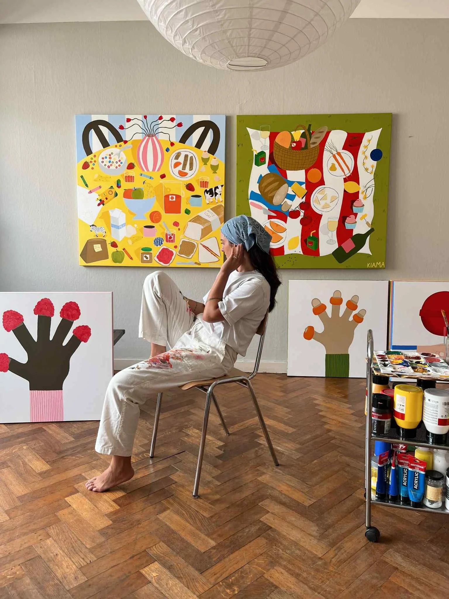 Kiama’s work explores the beauty of everyday moments, drawn from café scenes, shared meals with family & friends, and colour combinations noticed in passing.